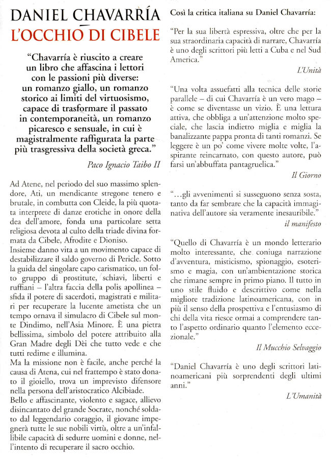 | Titolo completo | L'occhio di Cibele / Daniel Chavarria ; traduzione di Sandro Ossola |