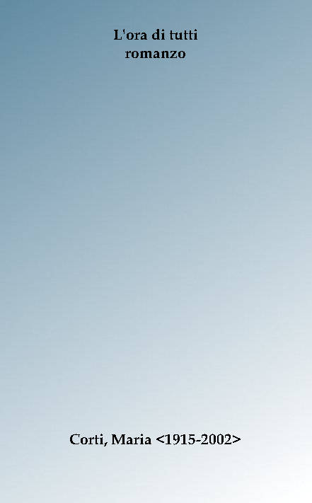 | Titolo completo | L'ora di tutti : romanzo / Maria Corti |