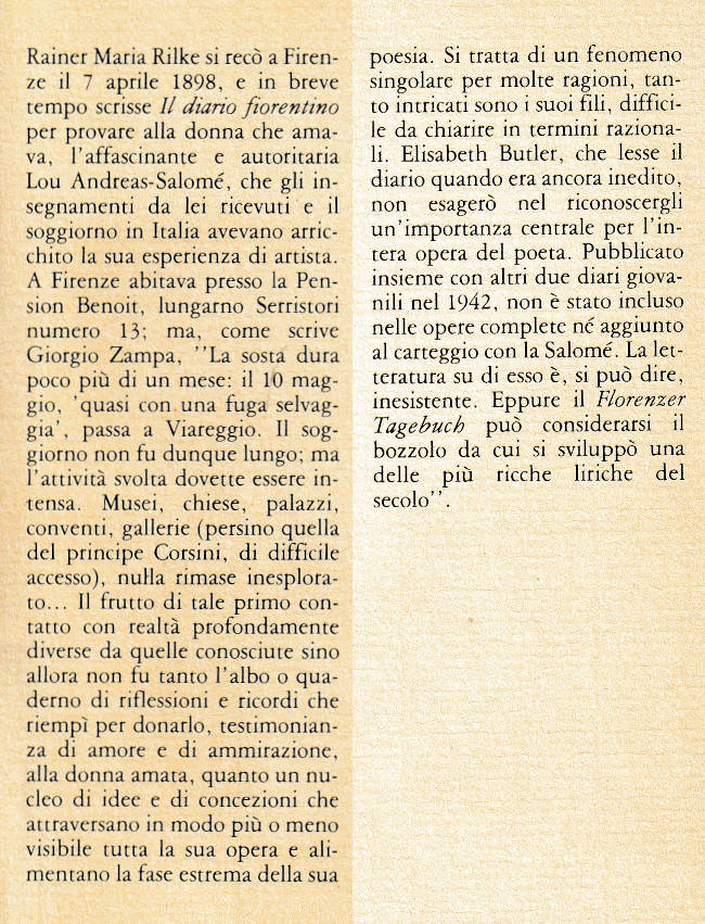 | Titolo completo | Il diario fiorentino / Rainer Maria Rilke ; a cura di Giorgio Zampa |