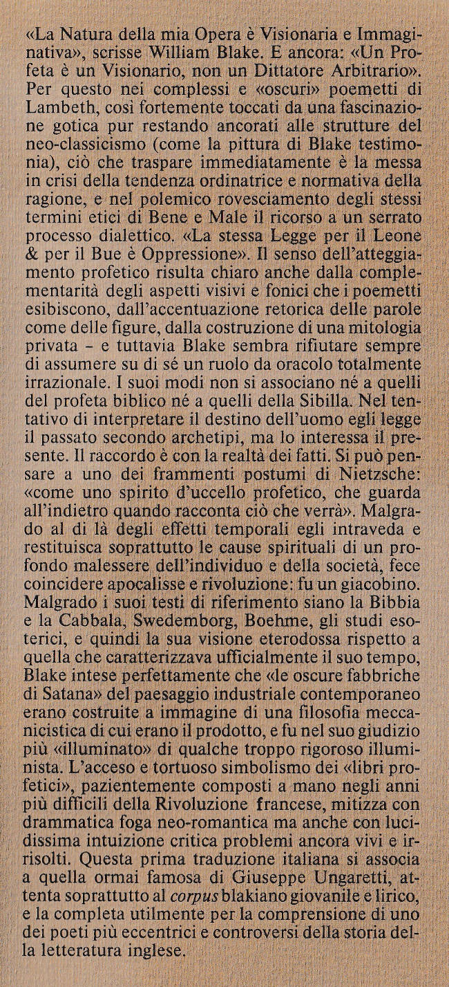 | Titolo completo | Libri profetici / William Blake ; introduzione, traduzione e note di Roberto Sanesi |