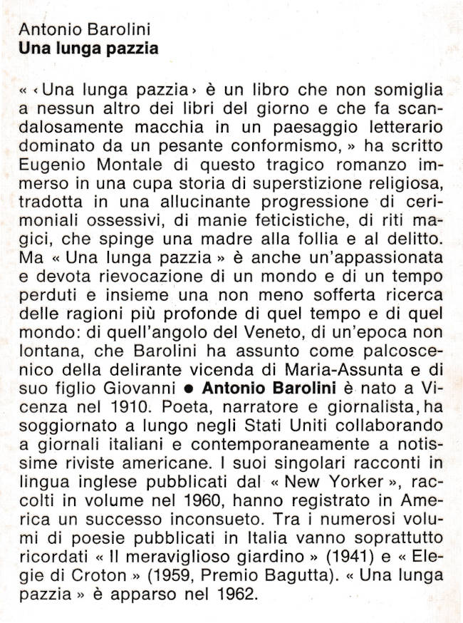 | Titolo completo | Una lunga pazzia : romanzo / Antonio Barolini |