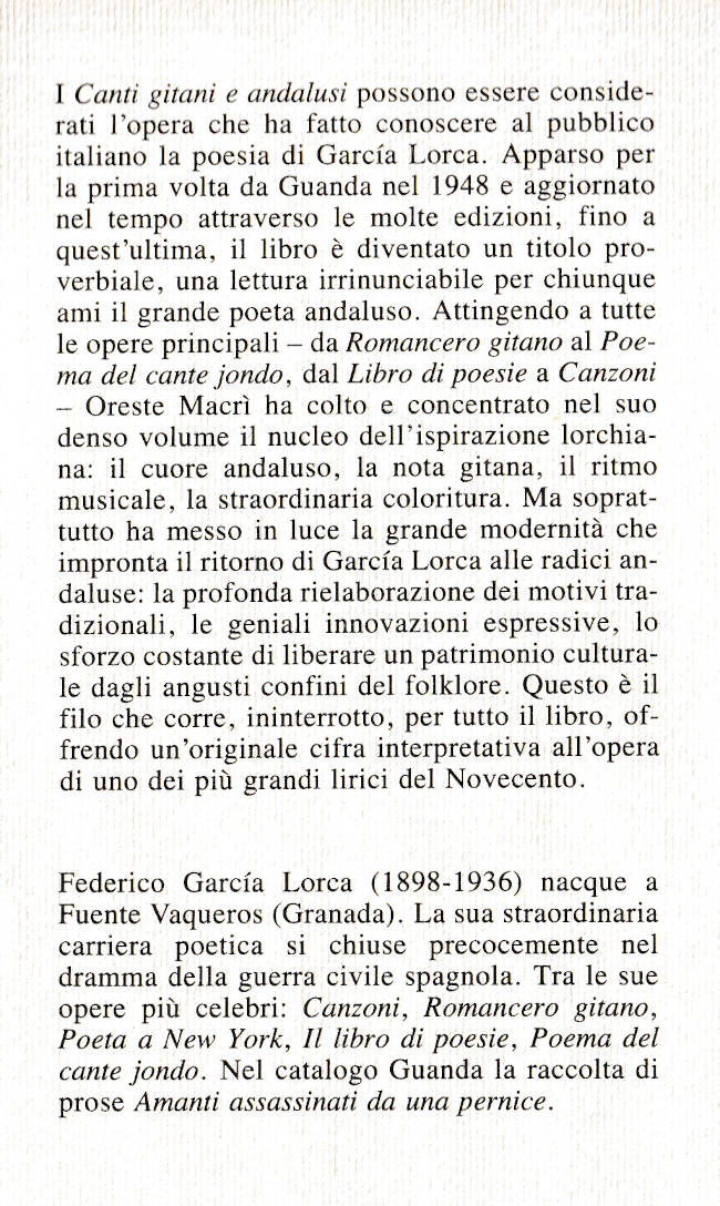 | Titolo completo | Canti gitani e andalusi / Federico García Lorca ; a cura di Oreste Macrì |