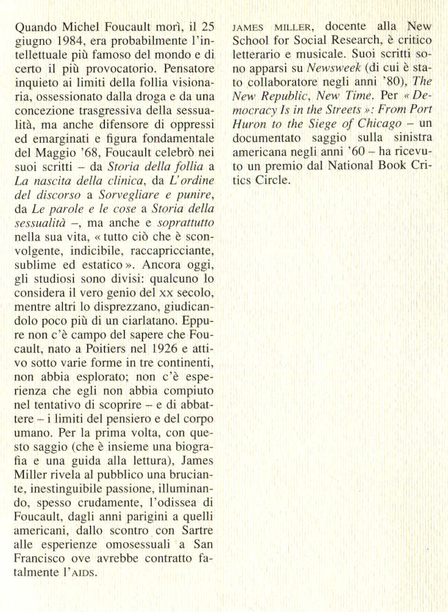 | Titolo completo | La passione di Michel Foucault / di James Miller ; traduzione di Elena Campominosi |
