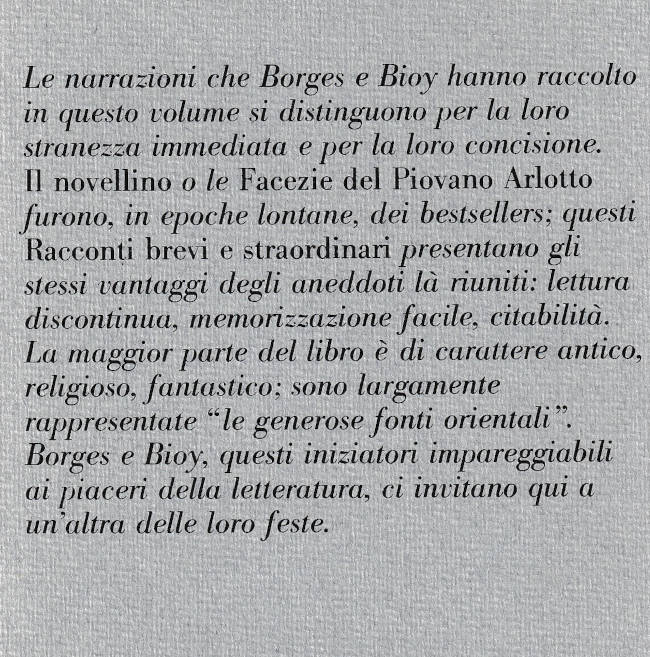 | Titolo completo | Racconti brevi e straordinari / [a cura] di Jorge Luis Borges e Adolfo Bioy Casares |