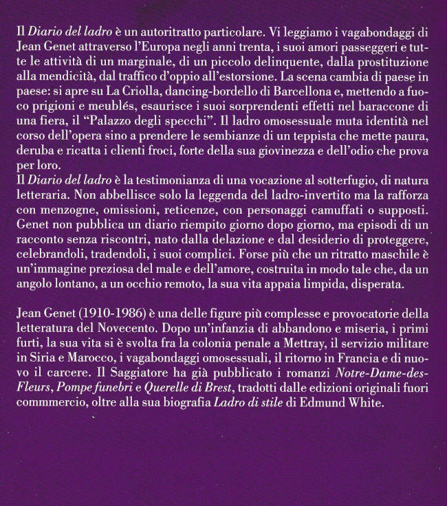 | Titolo completo | Diario del ladro : [romanzo] / Jean Genet ; traduzione di Giorgio Caproni ; introduzione e cura di Alberto Capatti |
