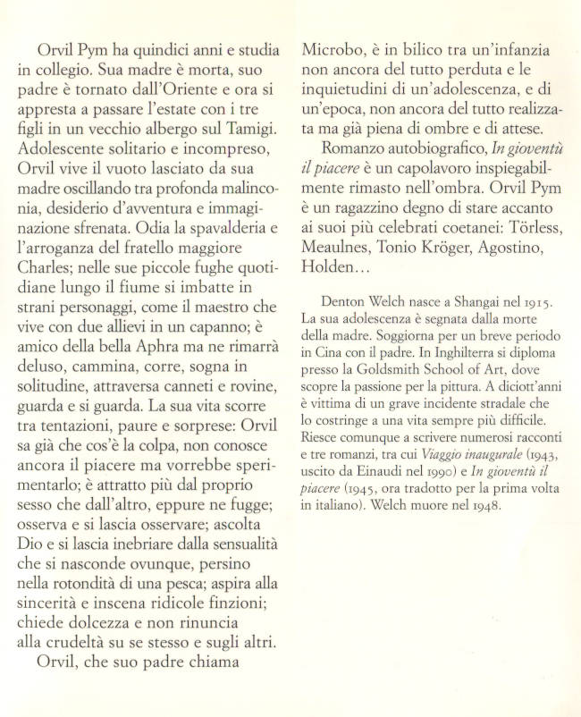 | Titolo completo | In giovent il piacere / Denton Welch ; prefazione di William Burroughs ; traduzione di Massimo Bocchiola |
