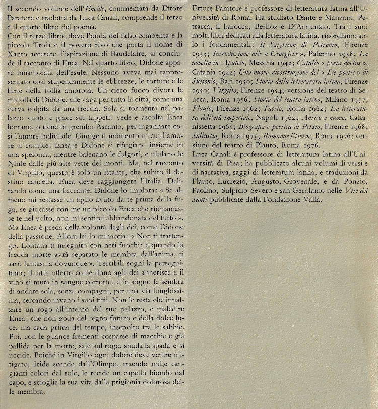 | Titolo completo | Vol. 2.: Libri 3.-4. / Virgilio ; a cura di Ettore Paratore ; traduzione di Luca Canali |