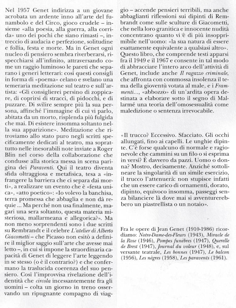| Titolo completo | Il funambolo : e altri scritti / Jean Genet ; a cura di Giorgio Pinotti |
