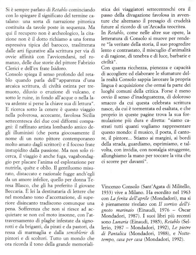 | Titolo completo | Retablo : romanzo / Vincenzo Consolo |