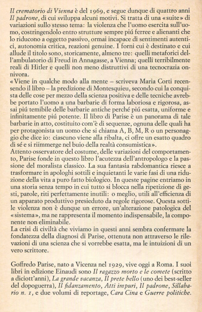 | Titolo completo | Il crematorio di Vienna / Goffredo Parise |