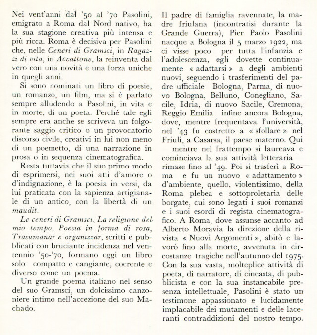 | Titolo completo | Le poesie : Le ceneri di Gramsci ; La religione del mio tempo ; Poesia in forma di rosa ; Trasumanar e organizzar / Pier Paolo Pasolini |