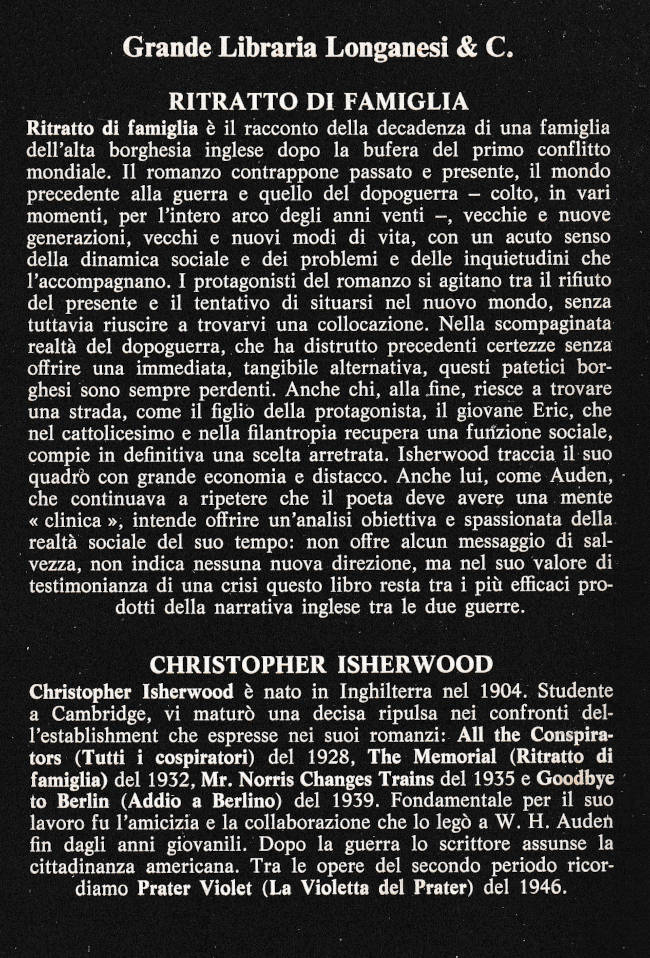 | Titolo completo | Ritratto di famiglia : romanzo / Christopher Isherwood ; introduzione di Elio Chinol |