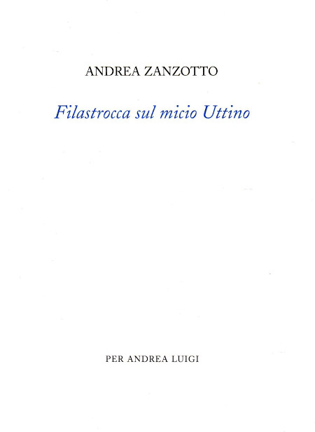 | Titolo completo | Filastrocca sul micio Uttino : per il nipotino Andrea Luigi, che compie il suo primo anno / Andrea Zanzotto |