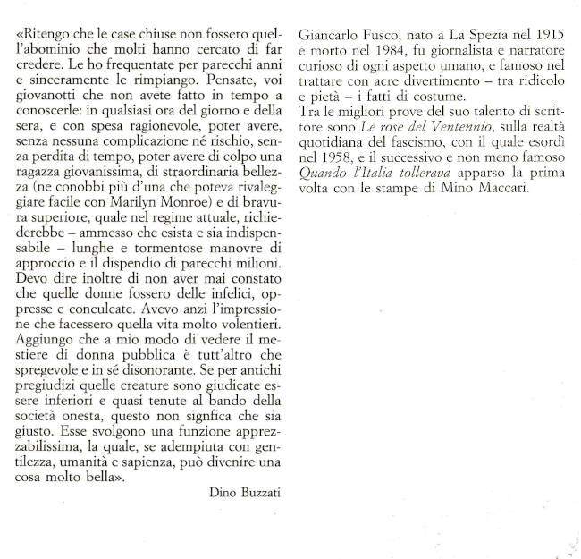 | Titolo completo | Quando l'Italia tollerava / Giancarlo Fusco ; con testimonianze di Buzzati [et al.] |
