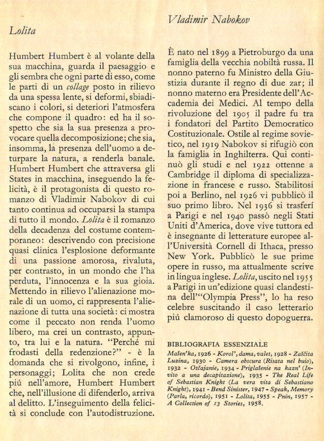 | Titolo completo | Lolita / Vladimir Nabokov ; traduzione di Bruno Oddera |