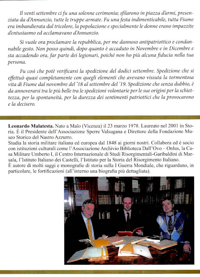 | Titolo completo | D'Annunzio e i suoi legionari : il tenente Eugenio Maria Poletti e i rapporti fra Legionari e militari regolari durante l'impresa di Fiume / Leonardo Malatesta |