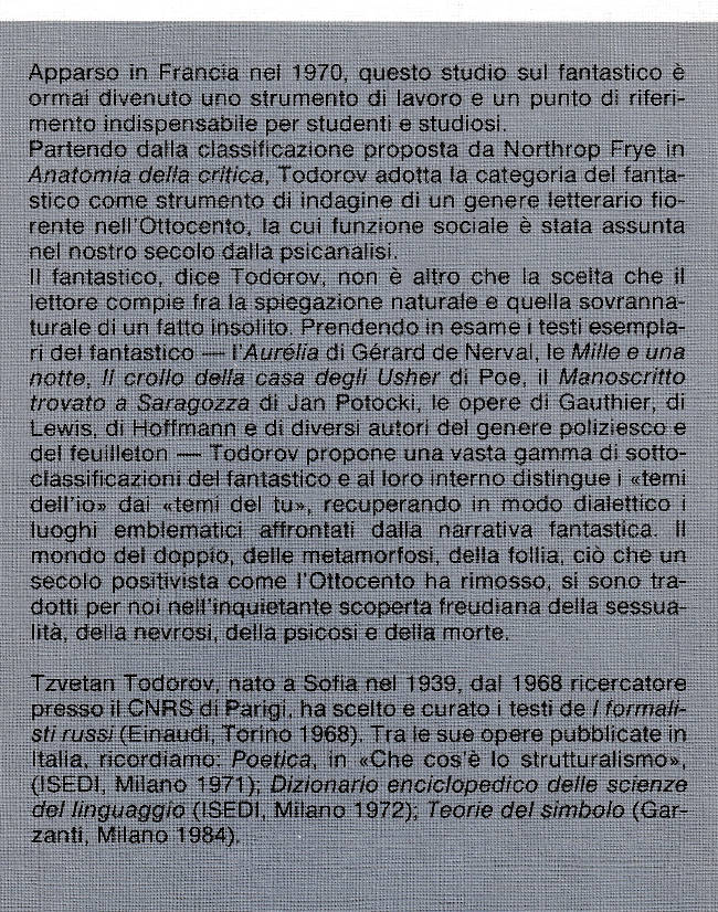 | Titolo completo | La letteratura fantastica / Tzvetan Todorov |