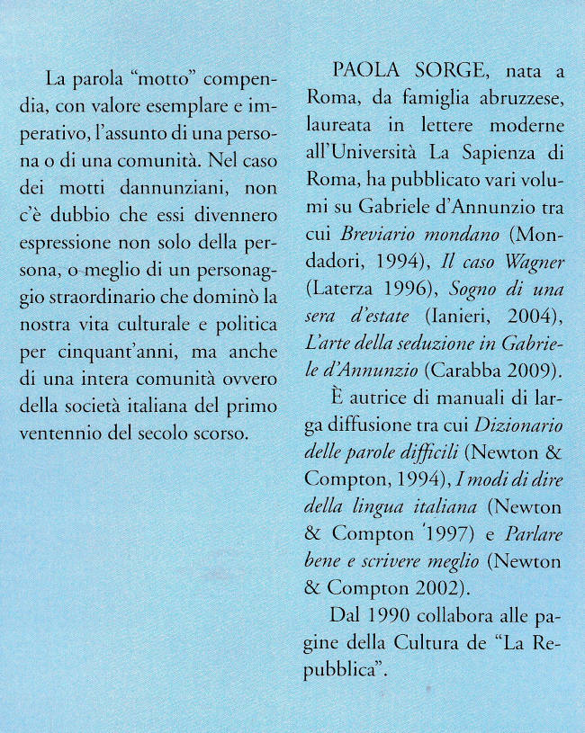 | Titolo completo | Motti dannunziani / Paola Sorge ; introduzione di Giordano Bruno Guerri |