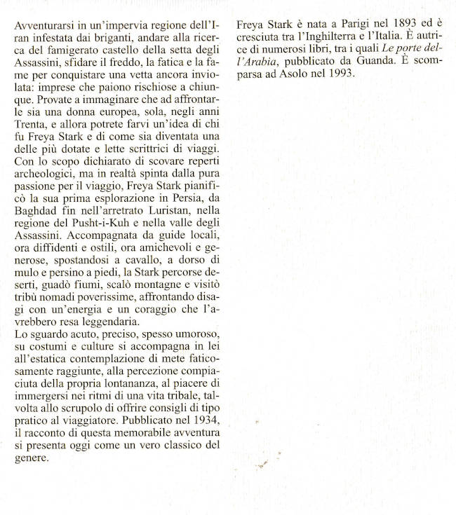 | Titolo completo | Le valli degli assassini / Freya Stark ; traduzione di Gioia Angiolillo Zannino e Nicoletta Coppini ; con uno scritto di Alberto Moravia |