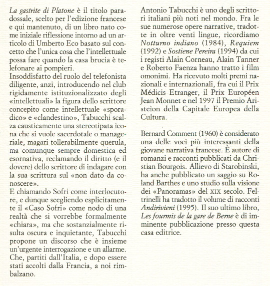 | Titolo completo | La gastrite di Platone / Antonio Tabucchi |