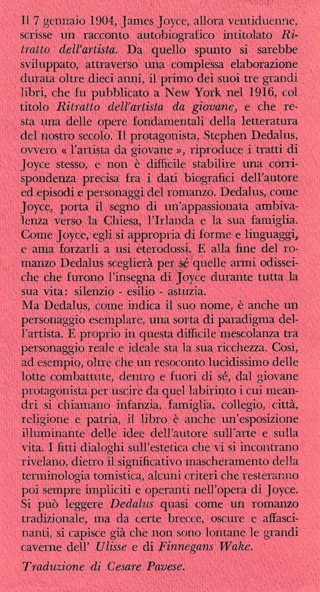 | Titolo completo | Dedalus : ritratto dell'artista da giovane / James Joyce ; prefazione di Alberto Rossi ; versione di Cesare Pavese |