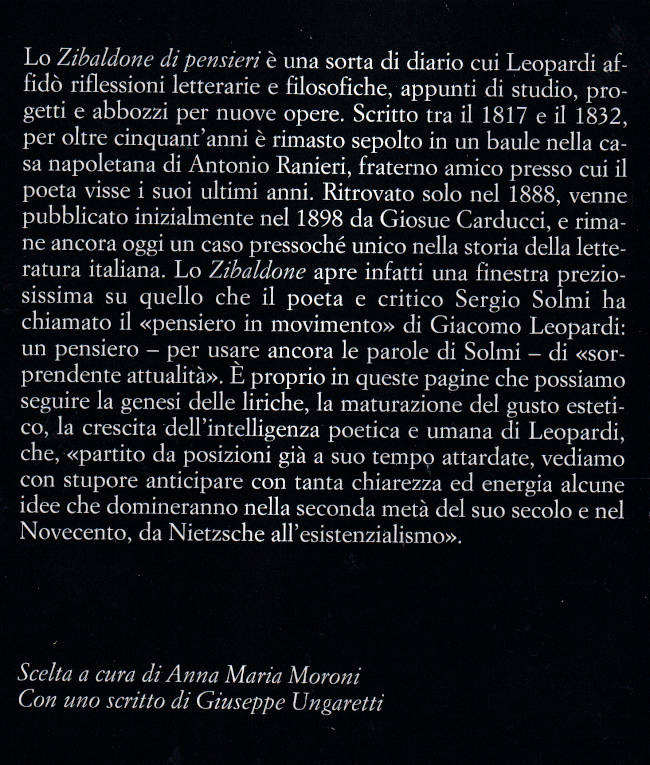 Leopardi, Giacomo <1798-1837> Moroni, Anna Maria Ungaretti, Giuseppe <1888-1970> |