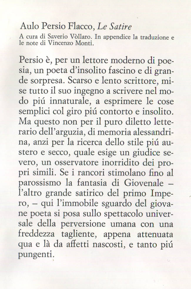 | Titolo completo | Le satire / Aulo Persio Flacco ; a cura di Saverio VĂ²llaro ; in appendice la traduzione e le note di Vincenzo Monti |
