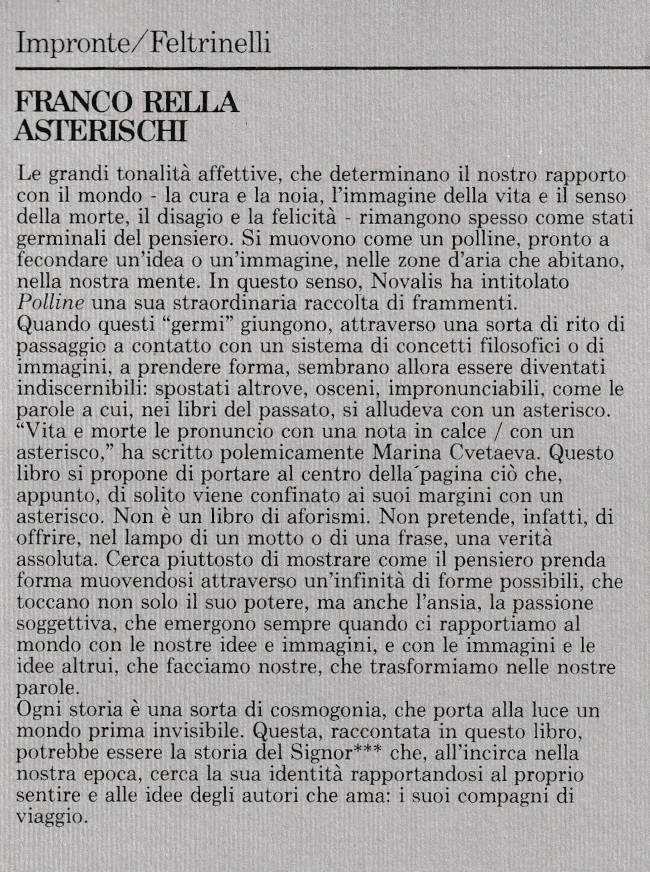Asterischi / Franco Rella |