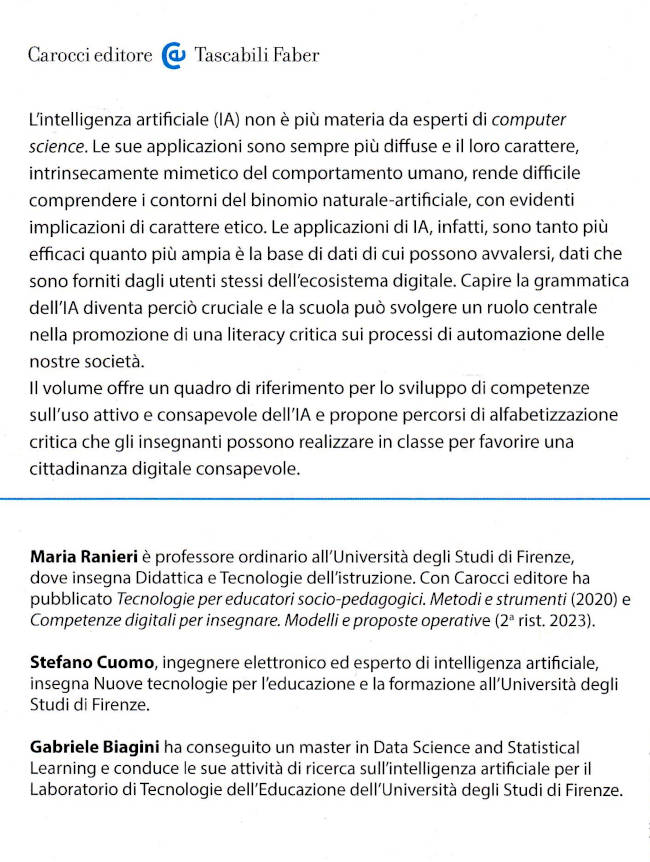 | Titolo completo | Scuola e intelligenza artificiale : percorsi di alfabetizzazione critica / Maria Ranieri, Stefano Cuomo, Gabriele Biagini |