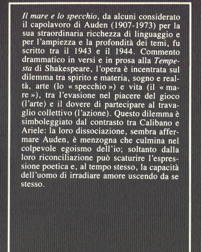 | Titolo originale | The sea and the mirror: a commentary on Shekespeare's "The tempest" |