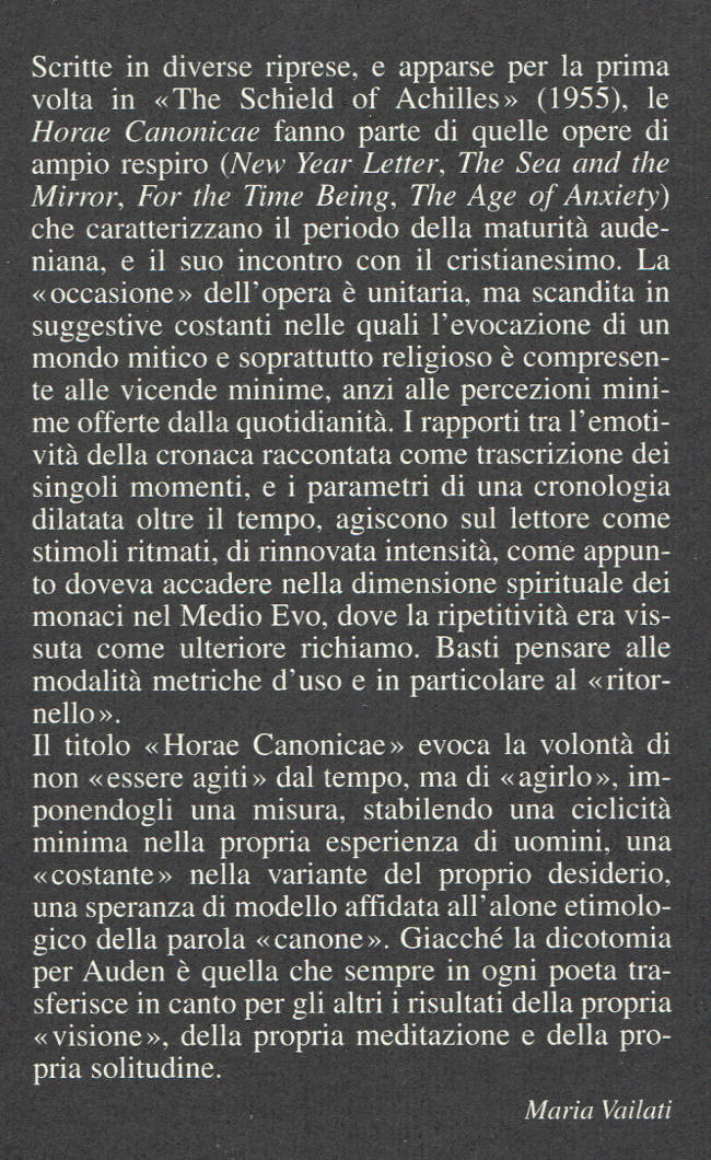 | Titolo completo | Horae canonicae / W. H. Auden ; traduzione di Aurora Ciliberti ; note di Maria Vailati |