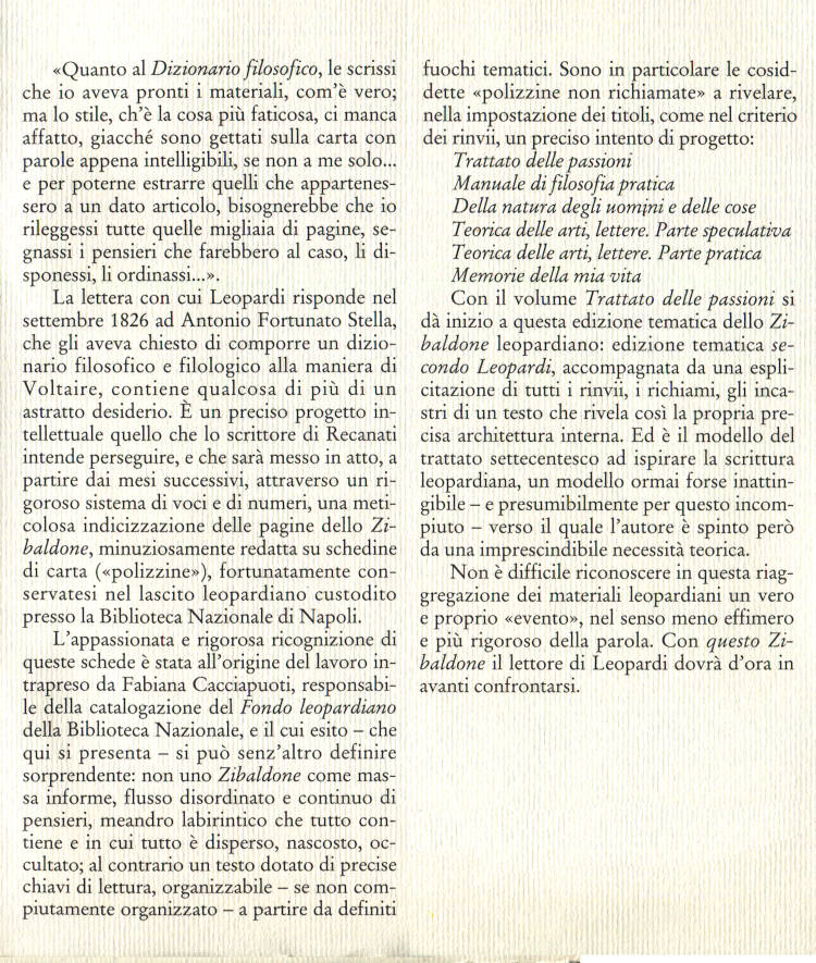 | Edizione | Ed. tematica dello Zibaldone di pensieri stabilita sugli Indici leopardiani |