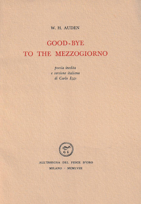 | Titolo completo | Good-bye to the mezzogiorno / W.H. Auden ; poesia inedita e versione italiana di Carlo Izzo |