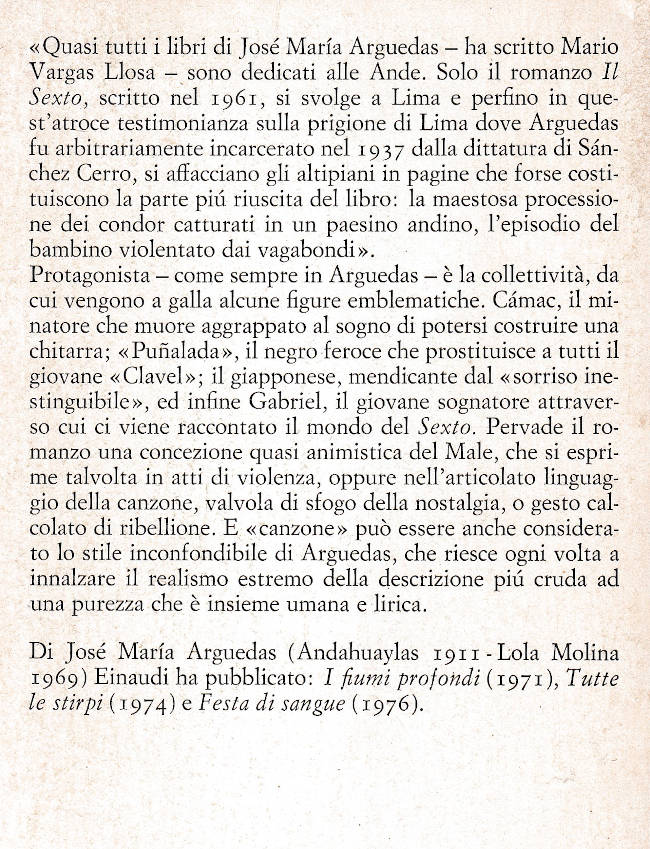 | Titolo completo | Il Sexto / José María Arguedas ; traduzione di Angelo Morino |