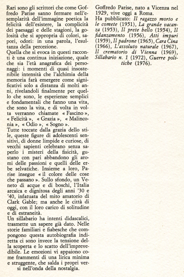 | Titolo completo | Sillabario n.2 / Goffredo Parise ; postfazione di Natalia Ginzburg |