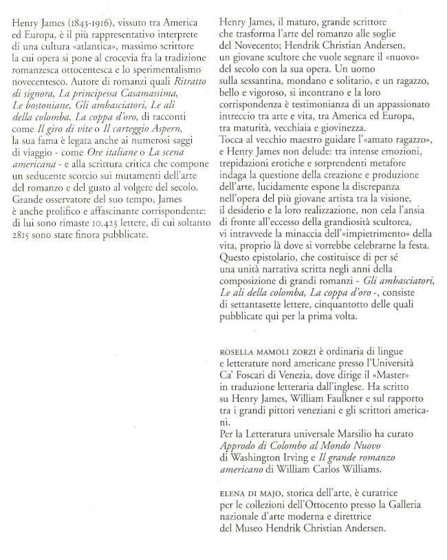 | Titolo completo | Amato ragazzo : lettere a Hendrik C. Andersen 1899-1915 / Henry James ; a cura di Rosella Mamoli Zorzi ; postfazione di Elena di Majo |
