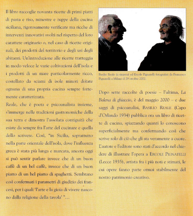 | Titolo completo | La cucina disattenta : i primi piatti della cucina siciliana fra tradizione e creatività spontanea / Basilioi Reale ; con 12 tavole a colori di Ercole Pignatelli |