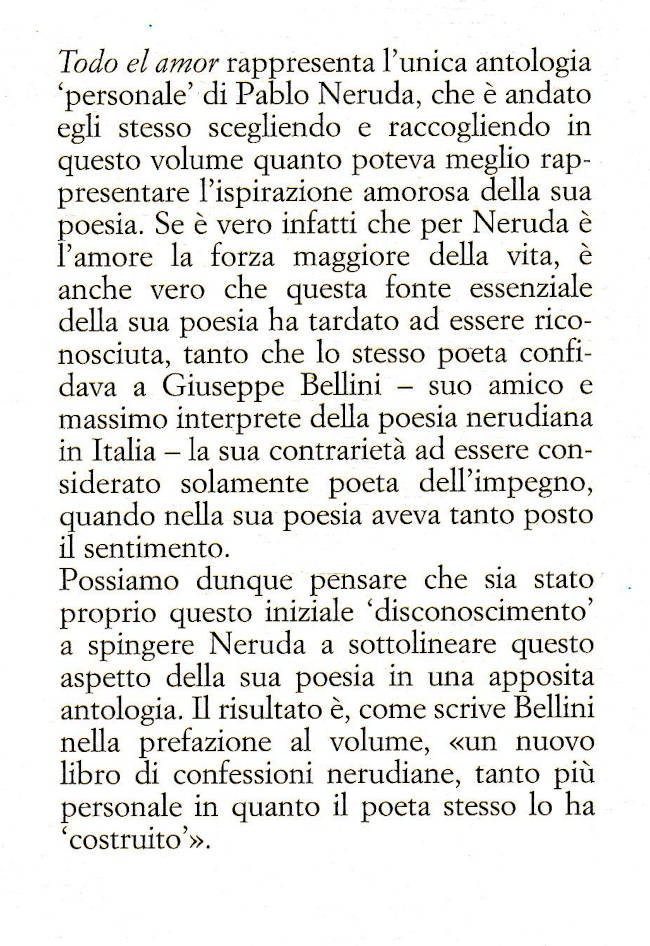 | Titolo completo | Todo el amor : antologia personale / Pablo Neruda ; a cura di Giuseppe Bellini |