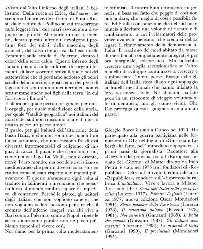 | Titolo completo | L'inferno : profondo sud, male oscuro / Giorgio Bocca |