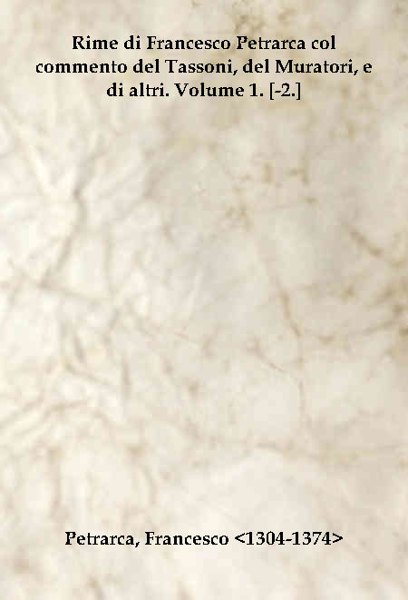 | Titolo completo | Rime di Francesco Petrarca col commento del Tassoni, del Muratori, e di altri. Volume 1. [-2.] |