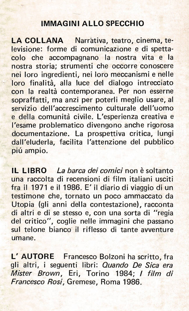 | Titolo completo | La barca dei comici / Francesco Bolzoni |