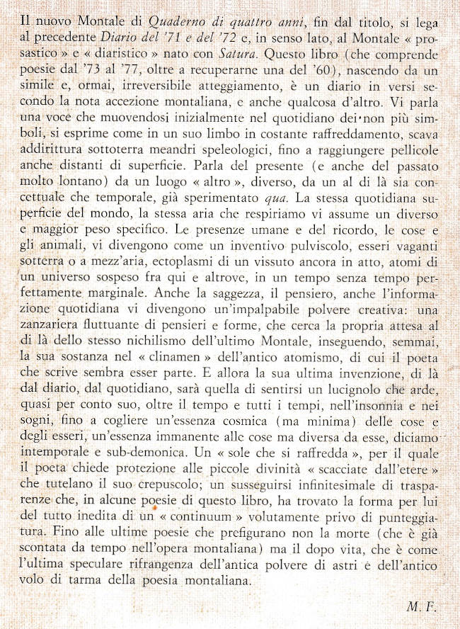 | Titolo completo | Quaderno di quattro anni / Eugenio Montale |