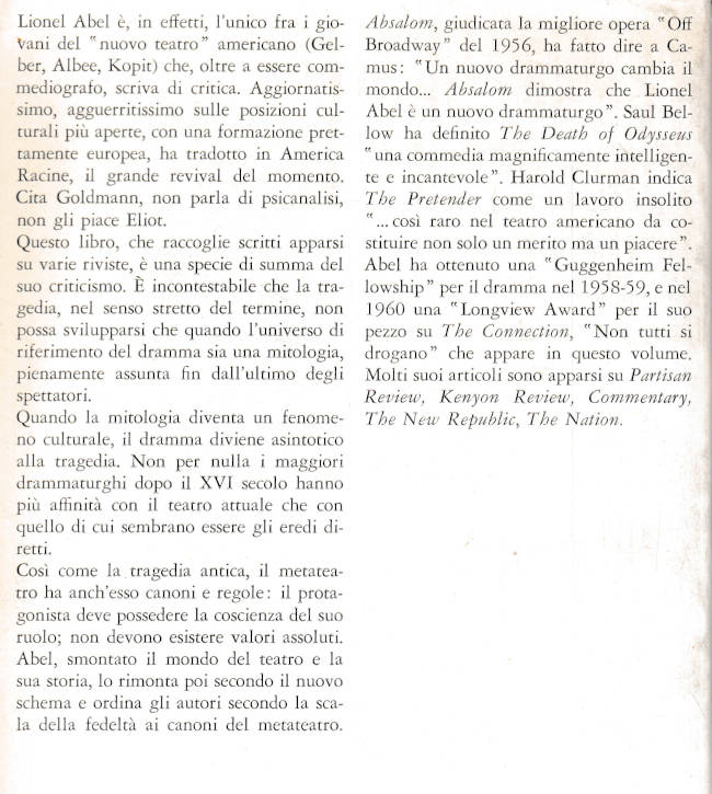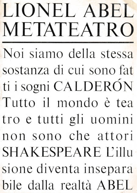 Metateatro : una nuova interpretazione dell'arte drammatica / Lionel Abel |